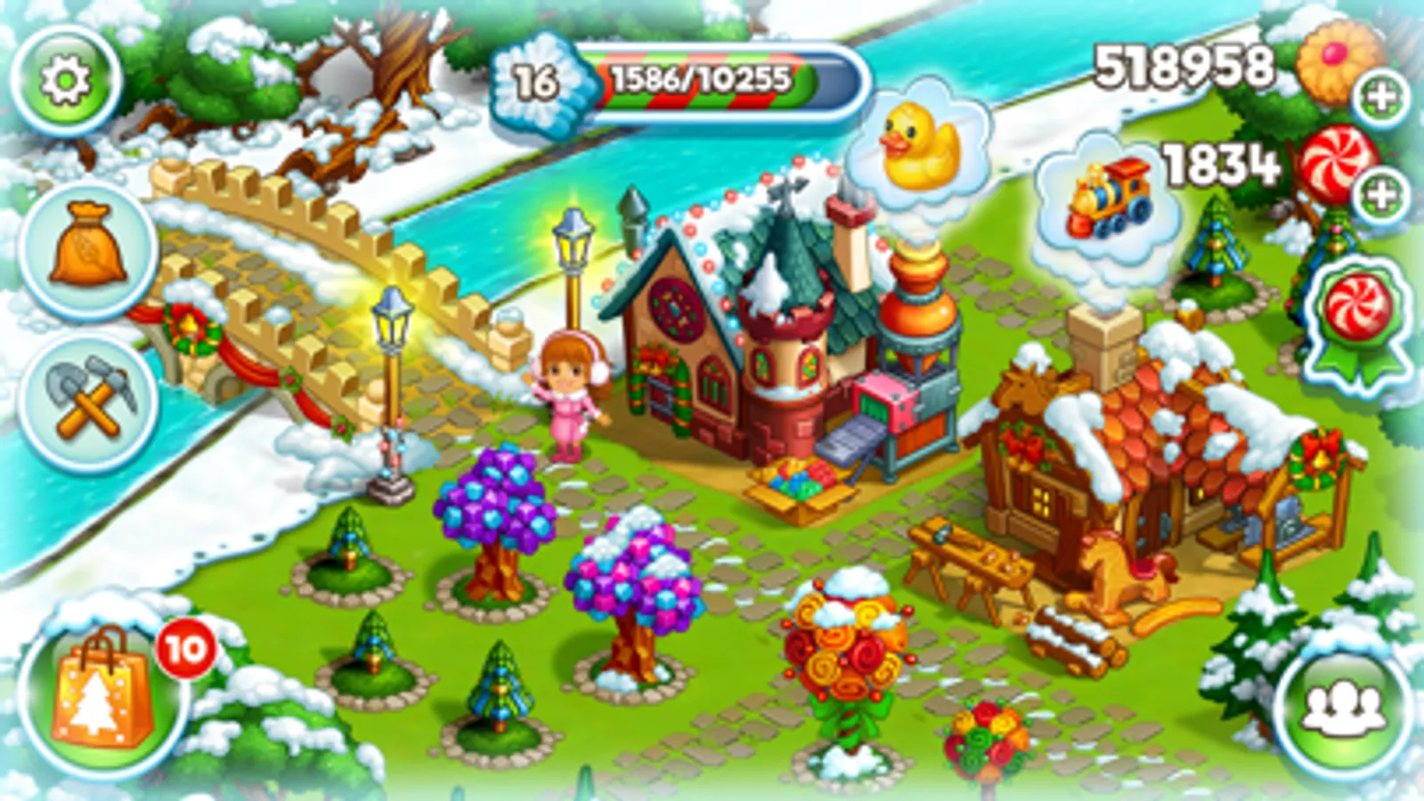 - Build Christmas factories such as winter clothes factory, paper toys plant, goblin’s foot mill, dolls workshop and others.
