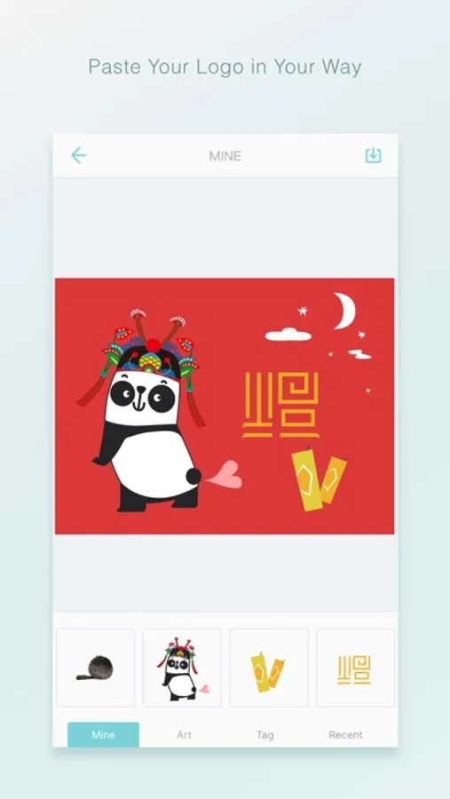 You can choose black and white, reverse or color mode to make your logo. The logo or icon can be dragged to anywhere on the photo and can be resized. You can also scale, adjust, or add filter to the photo to paste the logo.