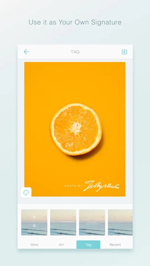 Another way to take a good advantage of My Watermarks feature is to make your own handwriting into a photo signature. Pick up a blank paper, write your name, and take a photo of the handwriting with My Watermarks Camera, keep the Normal mode. You can easily apply the signature to any photo on your device. You can change the color of it in the color panel.