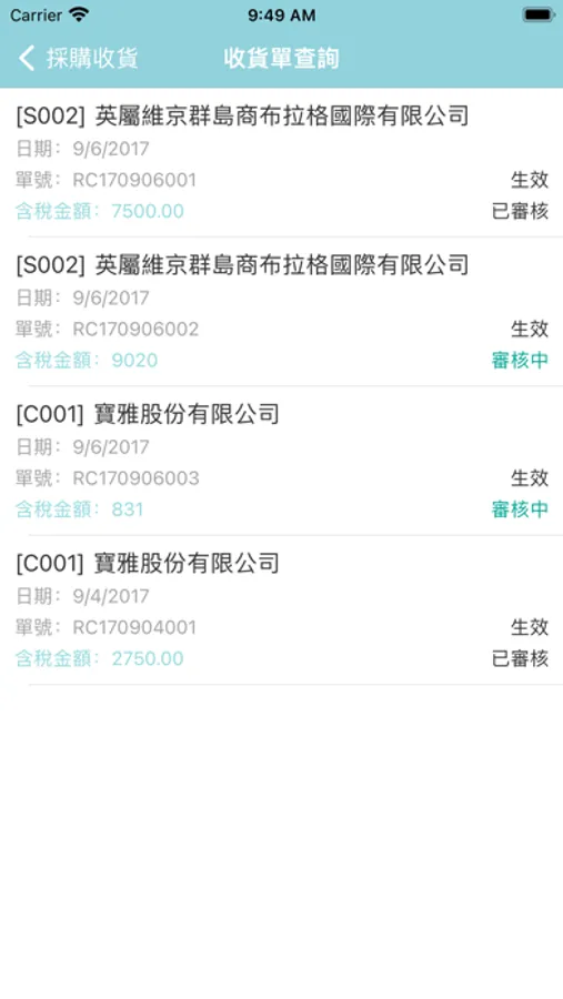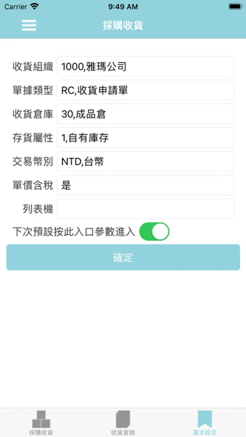 CHIAPP採購收貨整合正航T8/T9/NBS ERP系統上的採購單及收貨單資料,讓你可以針對採購單要入倉庫的商品,進行收貨確認及查詢作業。