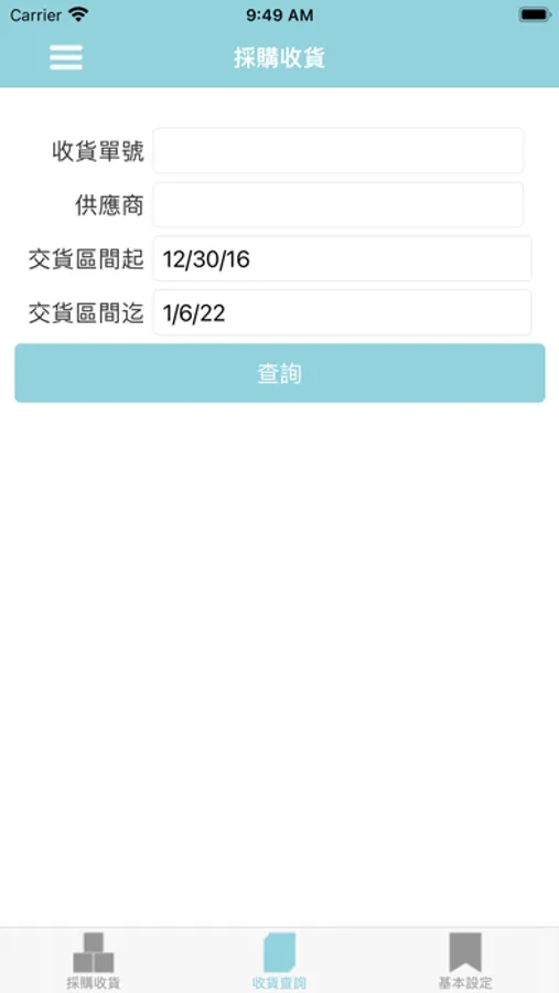 採購收貨:依據條件對已登打的採購單產品進行收貨確認。