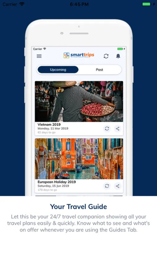Say Goodbye to a big stuffed wallet of paper documents and say hello to modern convenience. SmartTrips is a personalized electronic ticket wallet App designed for travellers by Smart Trips to carry all of your important paperwork when you travel. SmartTrips app not only stores all of your flight tickets, hotel & car hire vouchers, theatre and event tickets, it also has many other fantastic features.