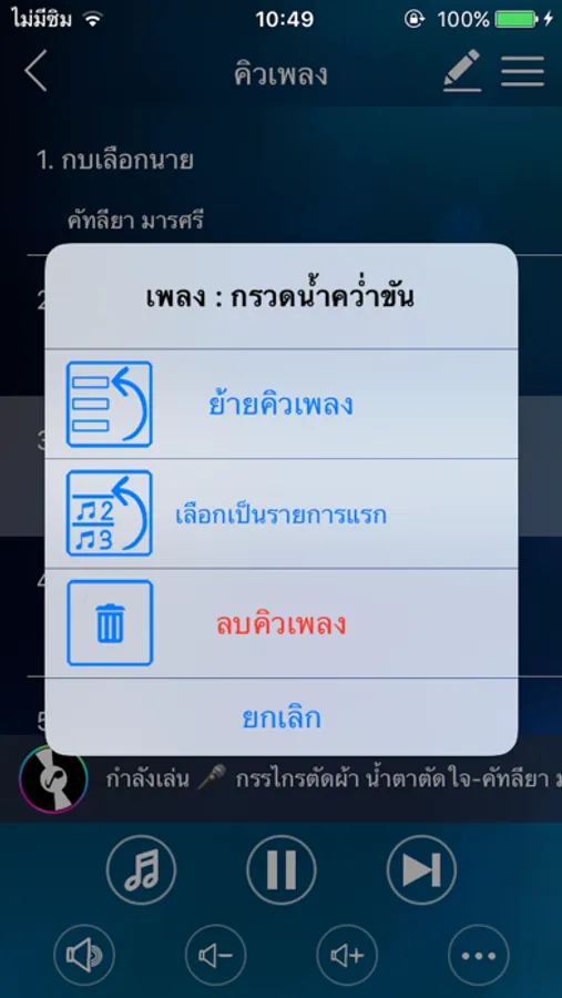 6. มีระบบจัดการคิวเพลง (ย้ายคิวเพลง, แทรกคิวแรก, ลบคิวเพลง)