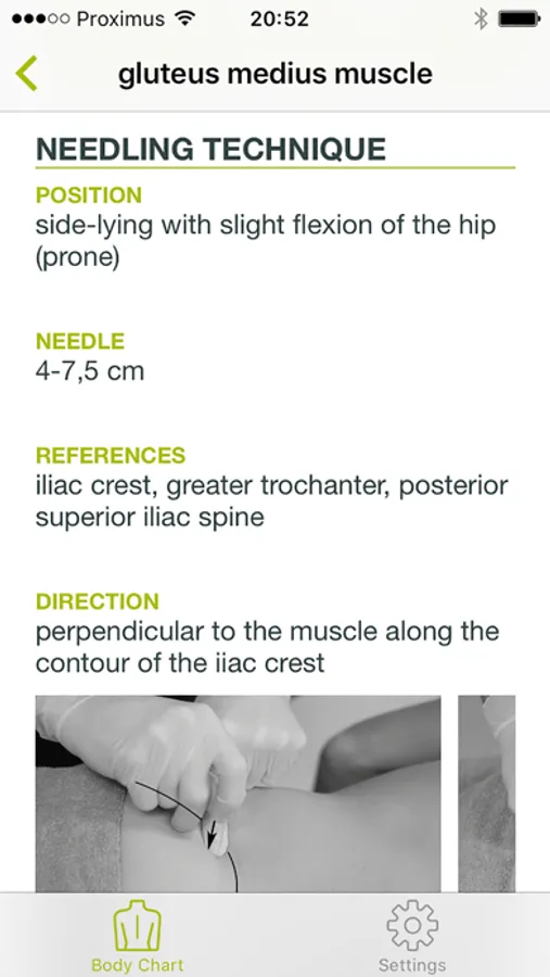 - Information about the needling technique (needle length, references and direction) with clear pictures