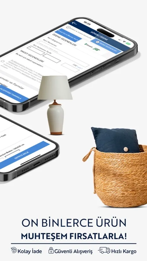 -Evinize dair tüm ihtiyaçlarınız için yüzlerce sofra, mutfak, dekorasyon, ev tekstili ve halı, kişisel bakım ve kozmetik gibi daha bir çok ürüne anında erişebilir ve satın alabilirsiniz.