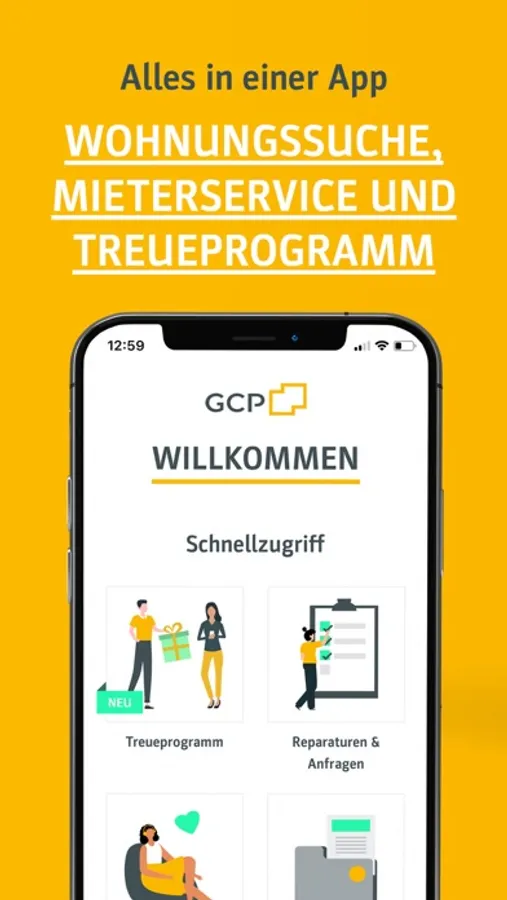 Wohnungssuche, Mieter-Service, Treuepunkte und Top-Deals: Das alles gibt es in der GCP App – jetzt noch schneller und einfacher. Für alle Mieter und zukünftigen Mieter.