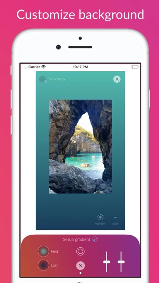 • Crop your picture and choose the background, with blur effect or coloured, with a tap. Easy!