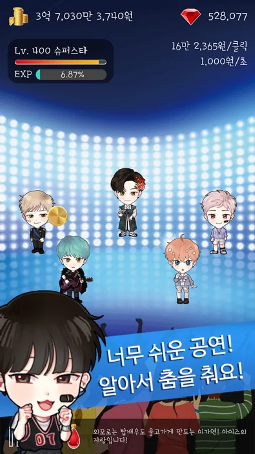 아이돌과 함께 공연하고 친구들과 팀 배틀을 벌일 수 있습니다.