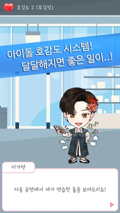 아이돌과 대화해서 호감도를 올려서 남친을 삼을 수도 있답니다~
