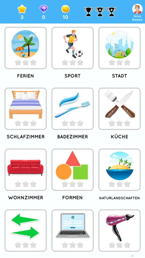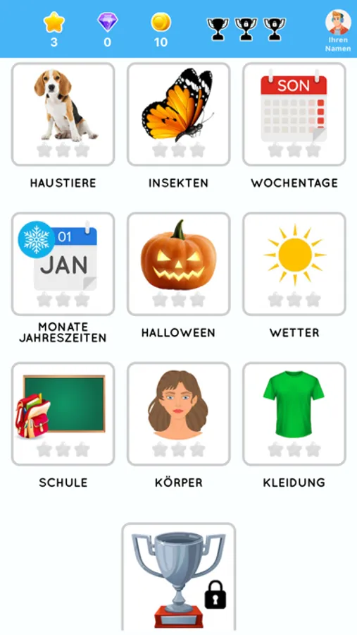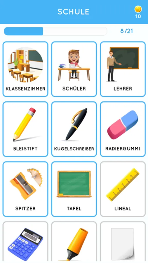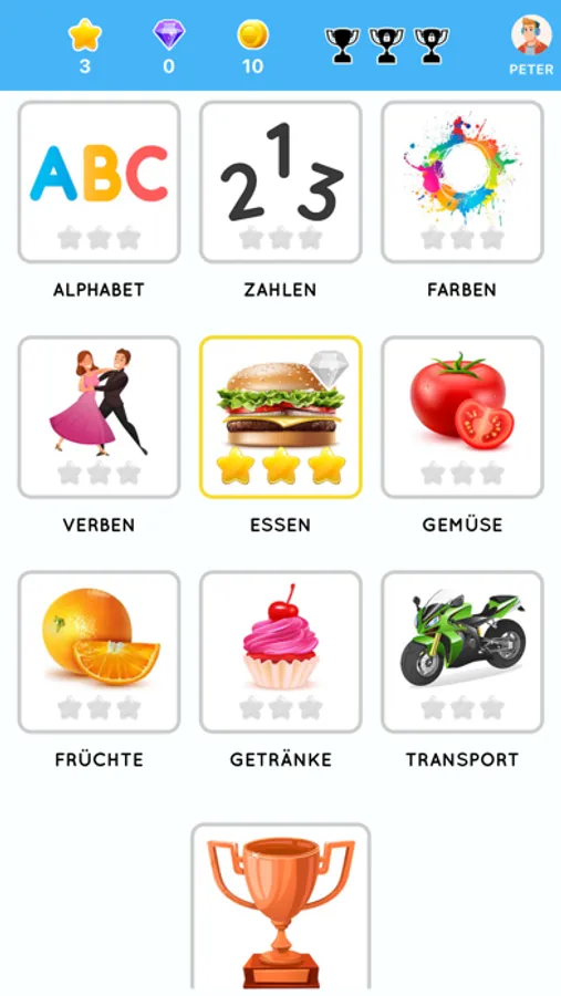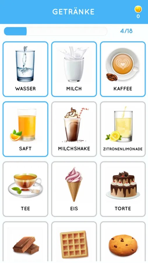 Basic: Alphabet letters , Numbers , Colors , Verbs , Food …