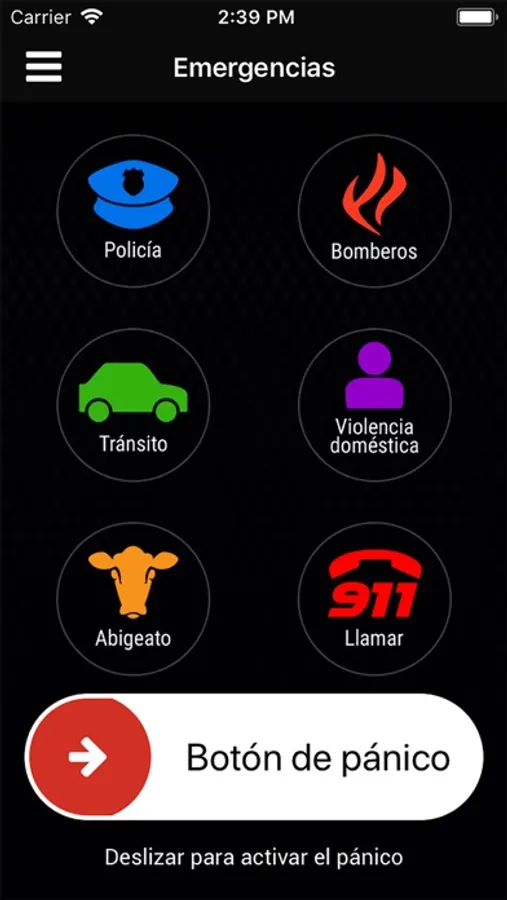 Ofrece un Botón de Pánico para cuando se es víctima de un hecho de Secuestro o Copamiento.