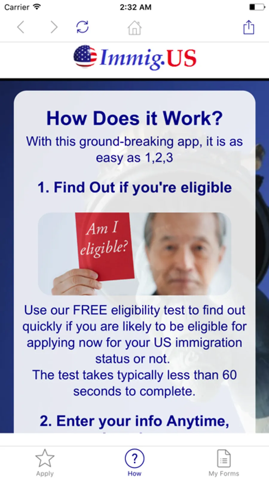 The world's First-Ever US Immigration App, that lets you prepare your immigration forms. Immigration does not have to be difficult of expensive. Get the complex US immigration forms prepared right from the app, on any device, iPhone, iPad or iPod. The app guides you through the process, using plain English, and you never see a government form (until it's ready to go, that is). The app prompts you for the relevant information, and validates your responses to reduce the chance of errors. You can even save your work and continue later from another device or a desktop computer. When done, just download & print your filled-up forms, along with our state-of-the-art Checklist, which ensures you don't forget anything! We even tell you where to mail your important application paperwork.