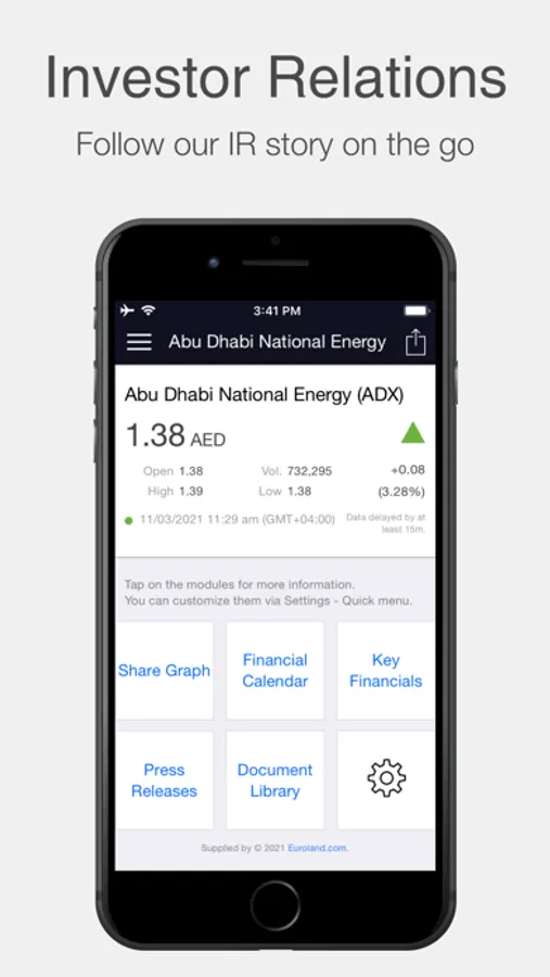 The Abu Dhabi National Energy Company PJSC (TAQA) Investor Relations app will keep you up-to-date with the latest share price data, stock exchange and press releases, IR calendar events and much more.