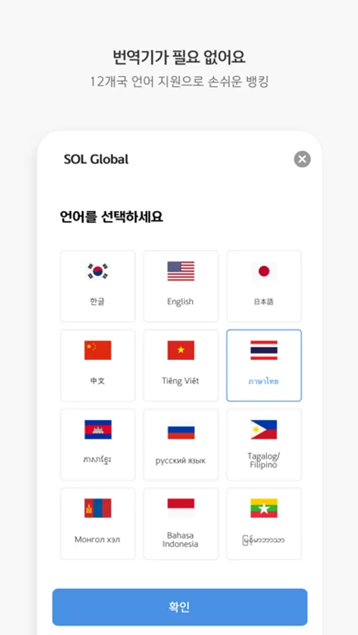 SOL GLOBAL của Shinhan là ứng dụng bằng 12 thứ tiếng, giúp khách hàng người nước ngoài đang cư trú tại Hàn Quốc có thể sử dụng các dịch vụ ngân hàng cần thiết một cách tiện lợi và nhanh chóng như tra cứu tài khoản, chuyển