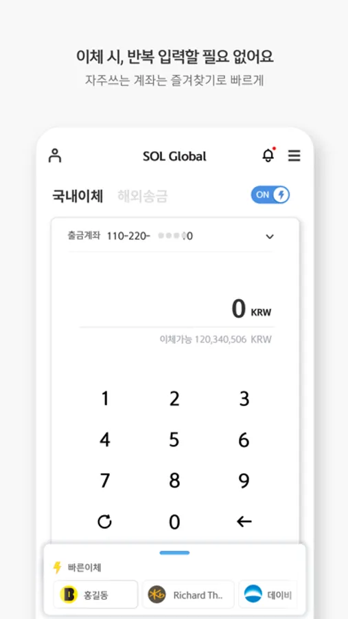 新韩SOL GLOBAL是一款快捷金融服务APP,面向在韩外国人以12种语言提供账户查询、境内转账、跨境汇款、查询卡账单、汇率通知、生活缴费等必备服务。