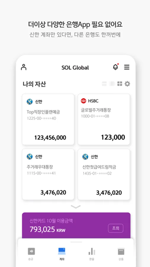 Offered in 12 languages, Shinhan SOL GLOBAL is a fast and convenient banking app for foreign customers in Korea. The services include account inquiries, domestic transfers, international transfers, card transactions inquiries, exchange