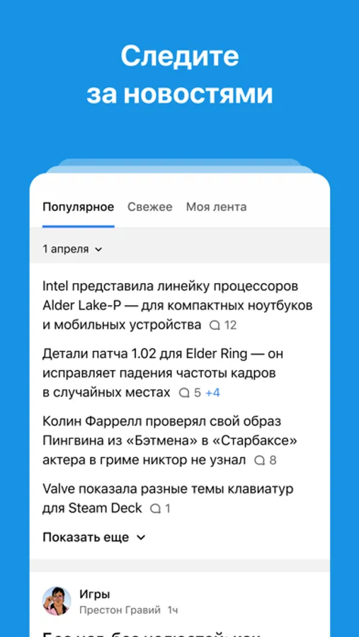 • Интересные находки, личный опыт и шутки в активных сообществах DTF: Кино и сериалы, Мобайл, Игры, Гайды, Вопросы, Gamedev, Скидки, Xbox, Ретро и других активных тематических сообществах с сотнями публикаций в день.
