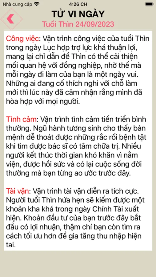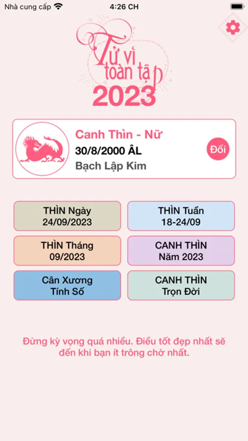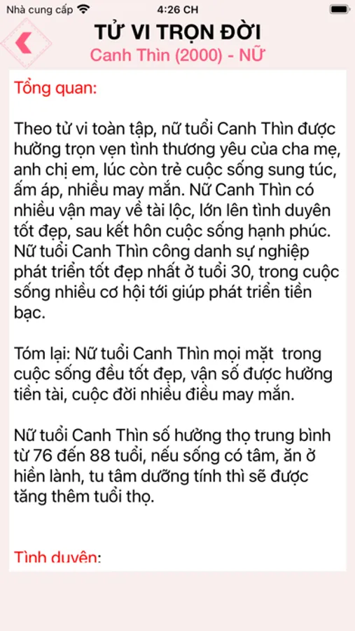 - Tóm tắt về Sức khỏe, Tài chính và Tình duyên.