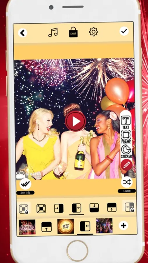 New Year Slideshow Maker is probably the best free filmmaker and an incredibly easy app you can use to make slideshows with music. Choose this video story application to share the important moments in your life with friends and family. This is the best way to unleash your inner artist - make fantastic picture decorations first with New Year photo stickers and beautiful frames. Then merge photos and be your own movie director. It is so easy and fun – try it and see for yourself!