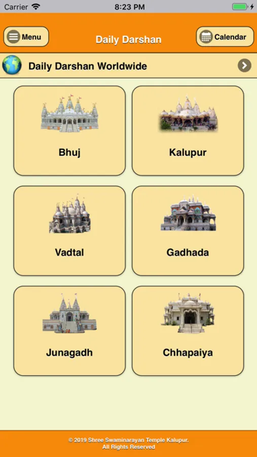 Instant access to 20+ Mandirs Darshan which includes the first Swaminarayan Mandir (Kalupur), the birth place of Ghanshyam Maharaj (Chhapaiya Mandir) and other Mandirs. At the click of a button, you can view the images of Murtis. Unique functions of Daily Darshan include being able to add favourite Mandirs to your home screen on the app, download and share images of Murtis through social media channels.