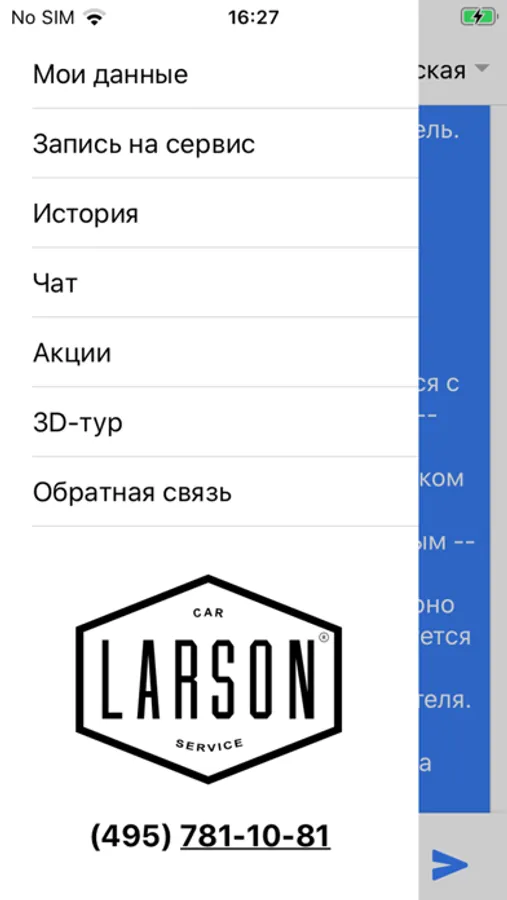 Мобильное приложение Larson Car – это комплекс новых возможностей, который делает общение с сервисом Larson ещё приятнее.