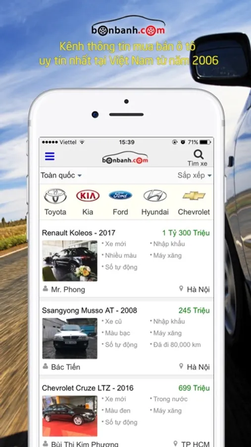 Tải ngay BonBanh - Ứng dụng chính thức của website Bonbanh.com - website mua bán ô tô uy tín nhất tại Việt Nam từ năm 2006 . Nơi bạn có thể nhanh chóng dễ dàng bán chiếc xe của mình hay có thể tìm cho mình một chiếc xe ô tô ưng ý nhất .