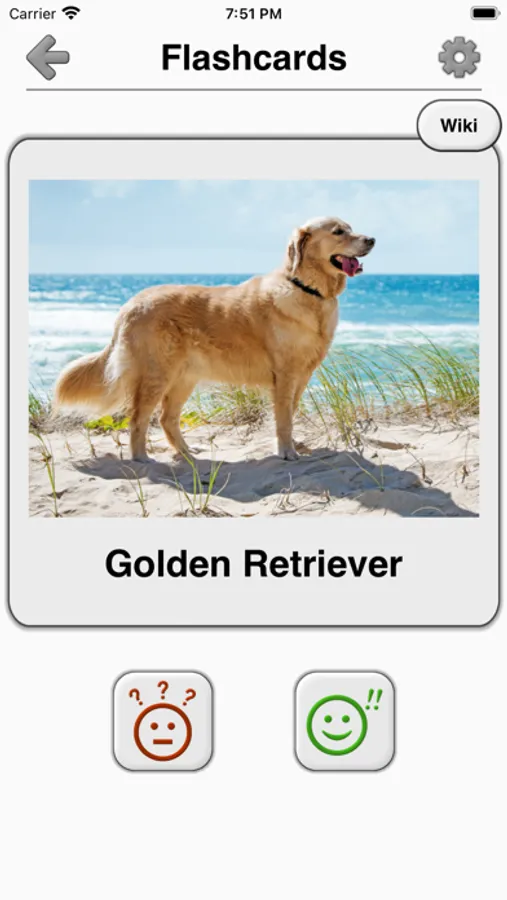 * Flashcards - browse all pictures of dogs in the application without guessing.