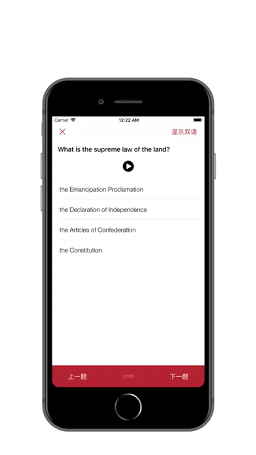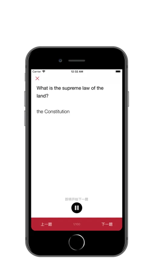 USCIS官方提供了相应的练习题,但是官方的版本一次只能练习20题,而您使用本App可以一次性练习100题,并且可以反复的练习。