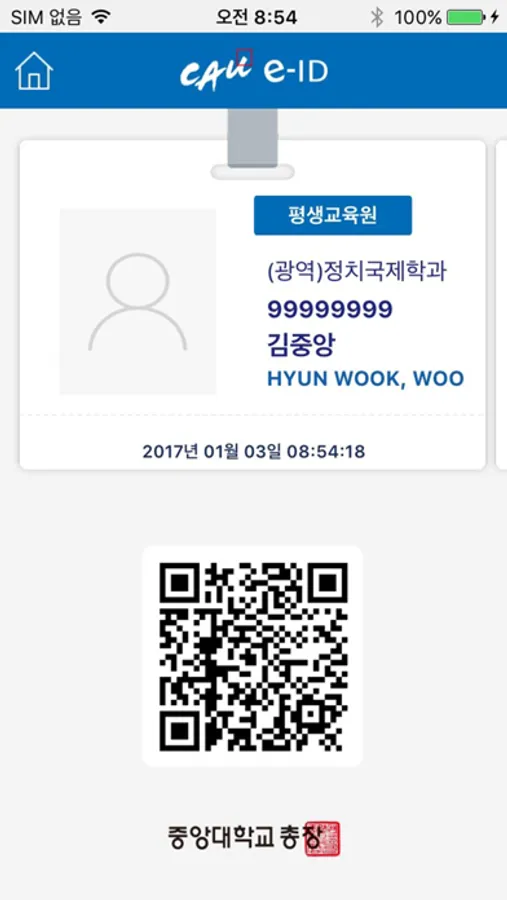 중앙대학교 평생교육원 학내 구성원을 대상으로 서비스하는 공식 모바일학생증/신분증 앱입니다.