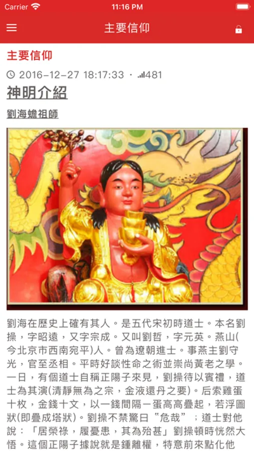 仙石府中以奉祀全真五祖之一的劉祖師海蟾真君為主,是富貴喜樂之神,是屬於「偏財神」左右則是供奉普賢菩薩和文殊菩薩,加上金蟾石、金象石和金獅石坐鎮宮內,讓香客來此不論是求正財或偏財,都相當靈驗。有不少生意不順利或是錢借出討不回來的人也都喜好來此祈求「巨石蟾蜍王」,用手觸摸,誠心祈求都可以有感應。