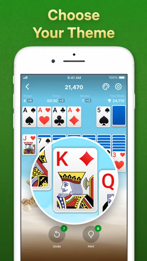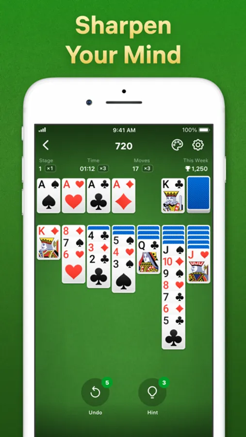 Improve your playing skills while reaching higher levels with every consecutive win! Expand your winning streaks, earn more points with every game and beat your high score! Keep your mind active and play Solitaire anywhere, anytime on your iPhone or iPad.