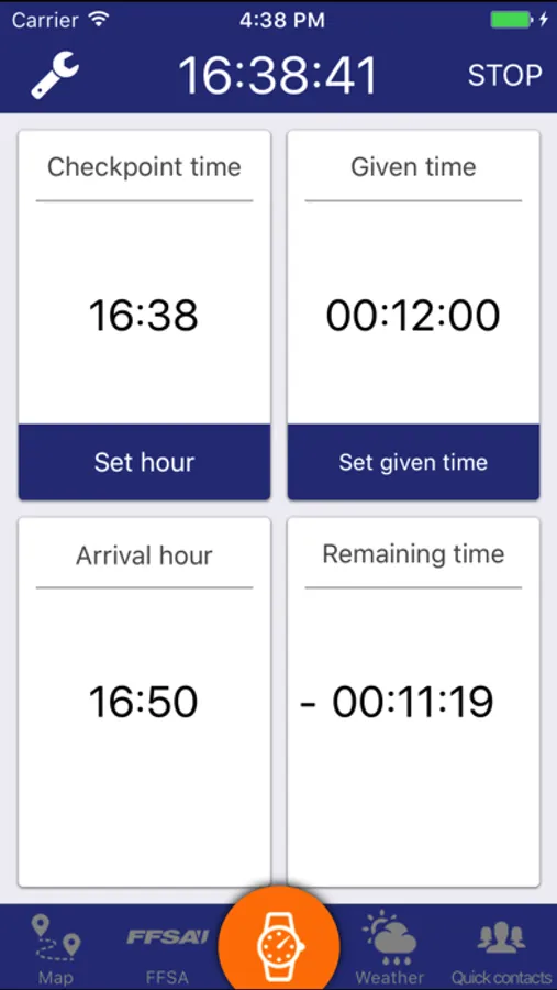 Gone is the stress of being wrong in the calculation of checkpoint time! With the main Checkpoint tab, specify your time of arrival, your given time and the application calculates your arrival time and the remaining time and alert you before it's too late !