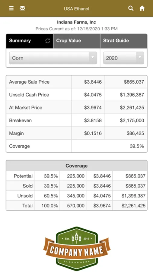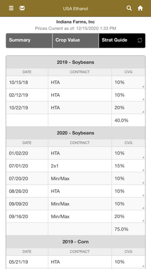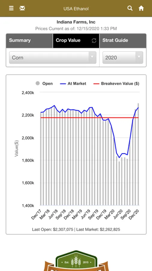 • Comparisons of crop value over time on contracted bushels vs. open market