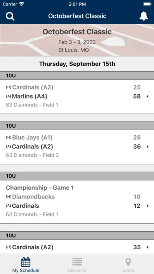 Follow our events and stay connected by viewing schedules, scores, brackets, and receiving notifications real-time.