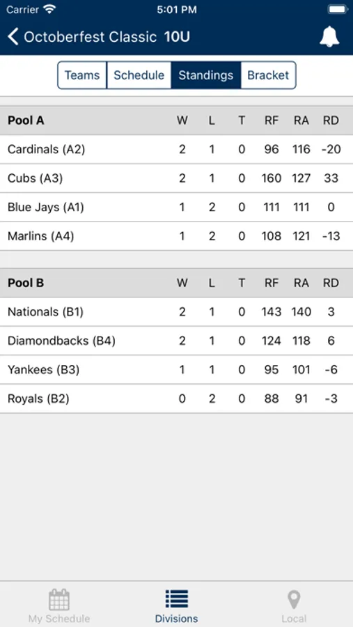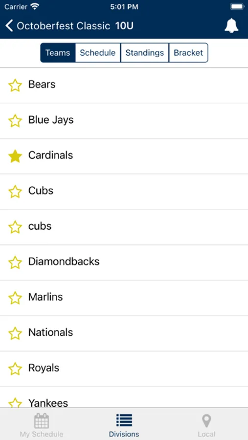 - View divisions and teams