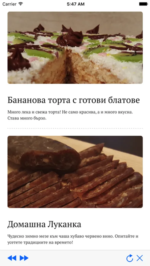 - Търсене на рецепти според наличните във вашата кухня продуки;