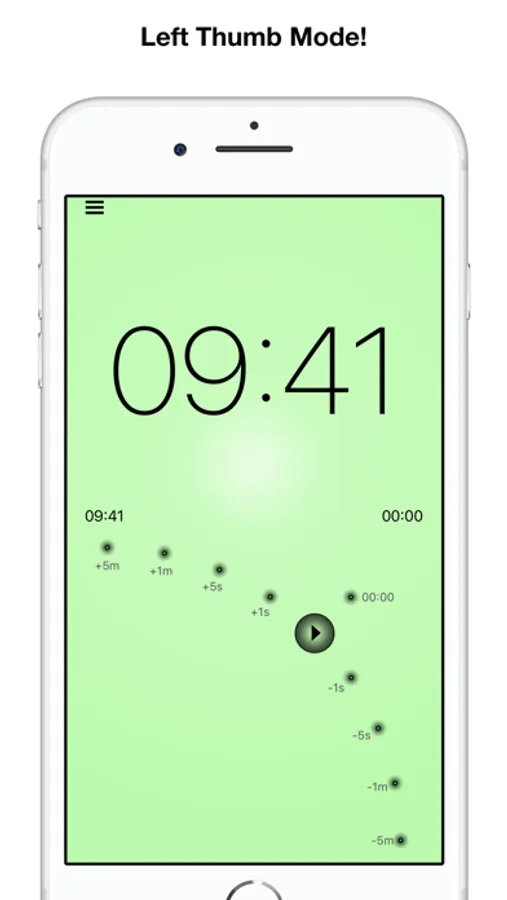 Control time setting, count down and alarm mode with just your thumb. Of course the app can be controlled with the left thumb as well as with the right thumb.