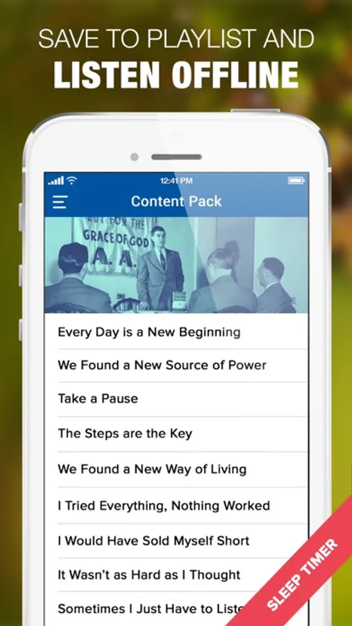 This app is a great resource you can use anywhere and anytime. It?s like an AA meeting in your pocket. Listen on the go, whether you are online or offline. You can build a playlist of your favorite AA speakers from around the world; workshops, audiobooks and more from Alcoholics Anonymous and Narcotics Anonymous, and Al-Anon too.