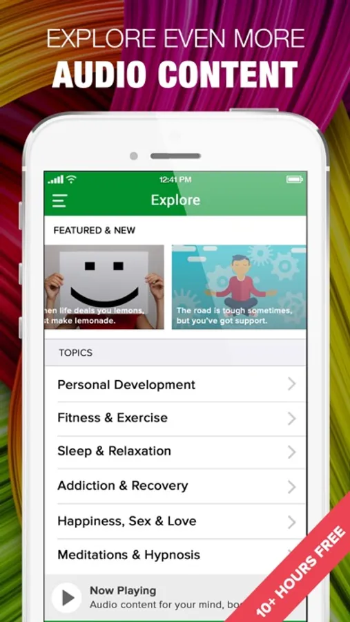Includes 24 topics and over 200 individual hypnosis programs with hours of free content. Unlock ALL for a one-time fee or monthly subscription.