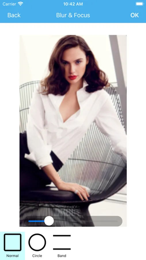 • Blur and focus your photos and backgrounds in Normal, Circle, and Horizontal Line modes.