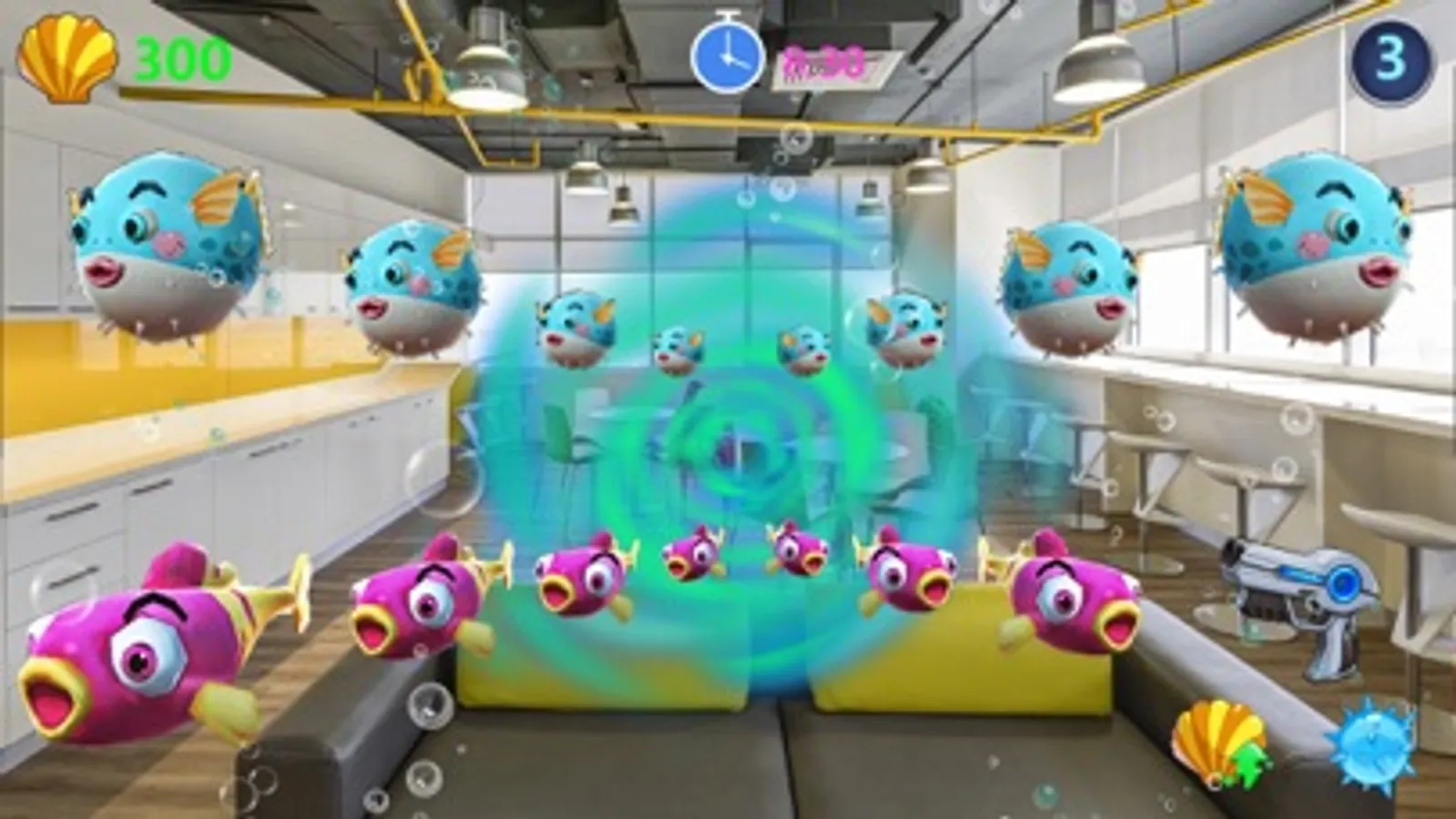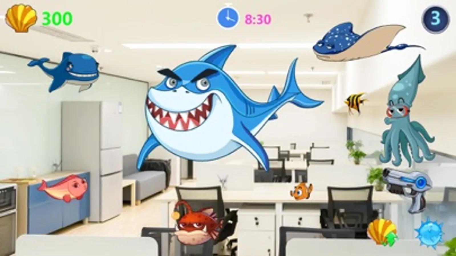 This is an entertainment application with AR technology, combines the reality scene and virtual 3D scene, it feels like you are in the sea, and the fish is swimming around you. 19 kinds of fishes, 6 kinds of weapons, 720 degrees shooting, a variety of fishes come out suddenly, challenge your reaction and sensitivity, it is a fishing game which need your whole body movement. The ultimate ocean BOSS, waiting for you to fight!