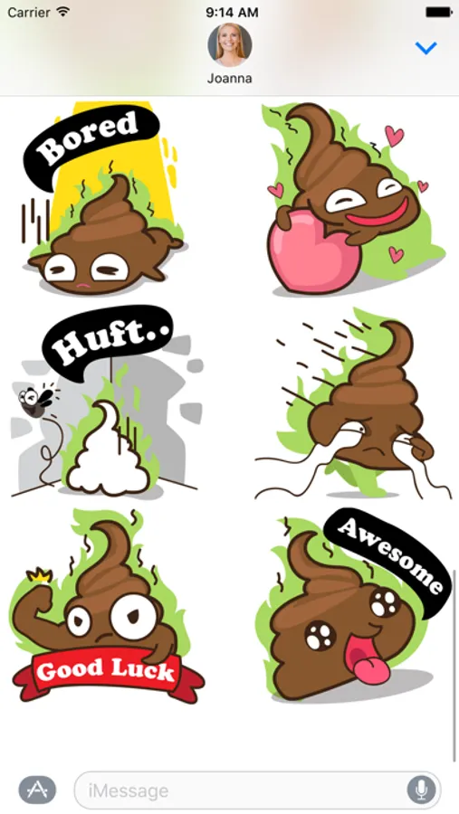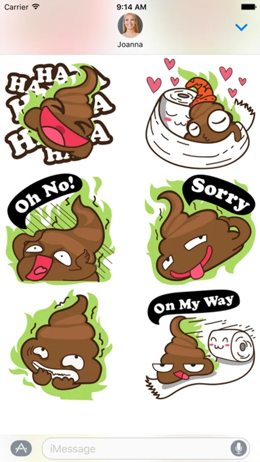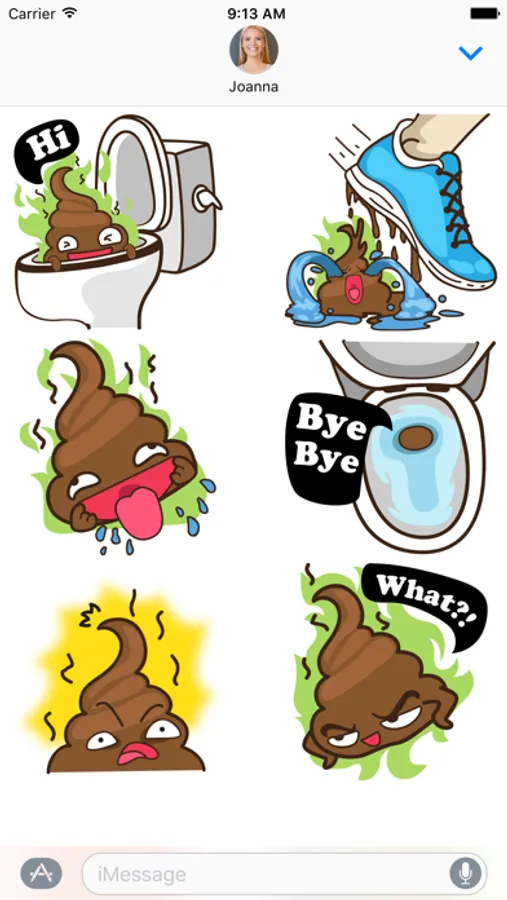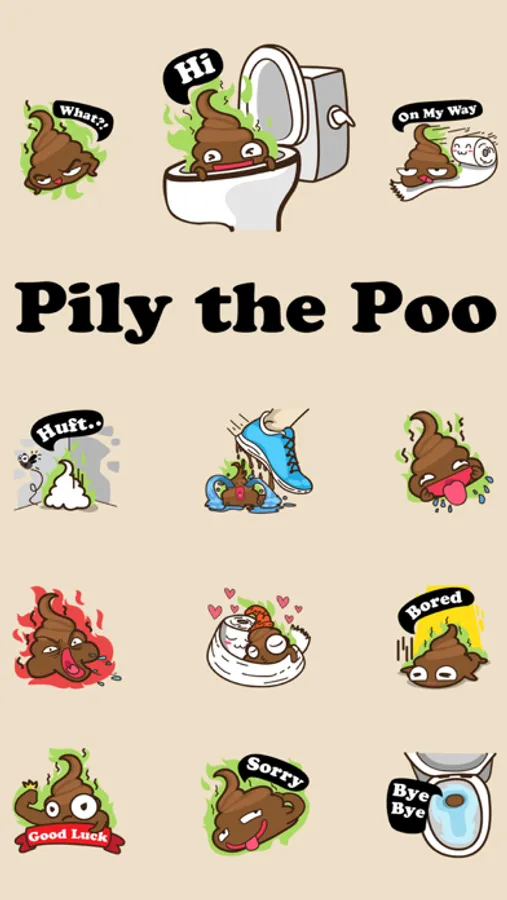 - Tap on the button in the bottom left which looks like four dots – you will see your Pily the Poo stickers there.
