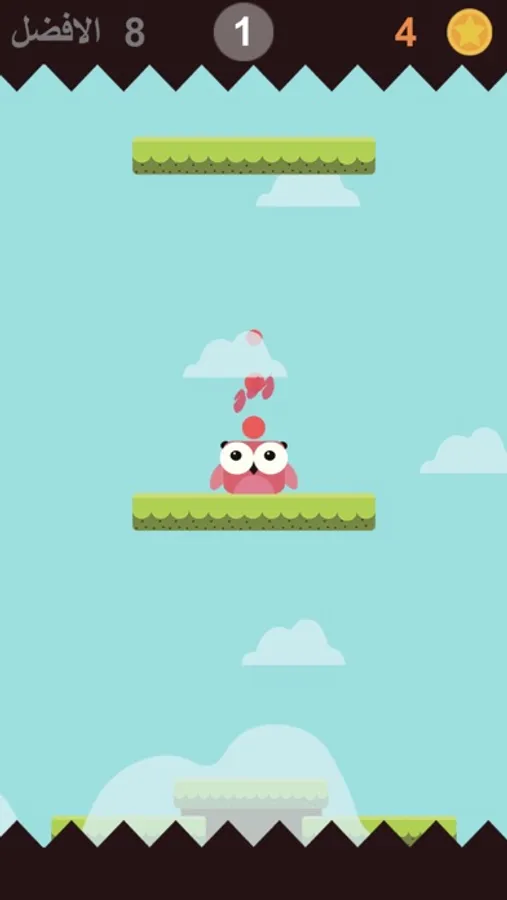 لعبة البومه النطاطه لعبه لا نهائيه عليك تنطيط الطائر من مستوى الى الاعلى، وعليك الانتباه من المسامير التي على الاطراف