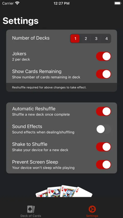 • Automatically re-shuffle a new deck when the previous one is complete.