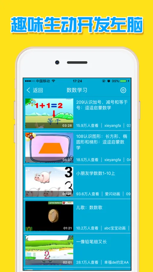 100个分类,1000+部学习资源,高清幼教数学视频应有尽有。