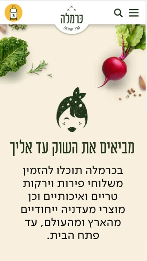מביאים את השוק עד אליך - בכרמלה תוכלו להזמין משלוחי פירות וירקות טריים ואיכותיים וכן מוצרי מעדניה ייחודיים מהארץ ומהעולם.