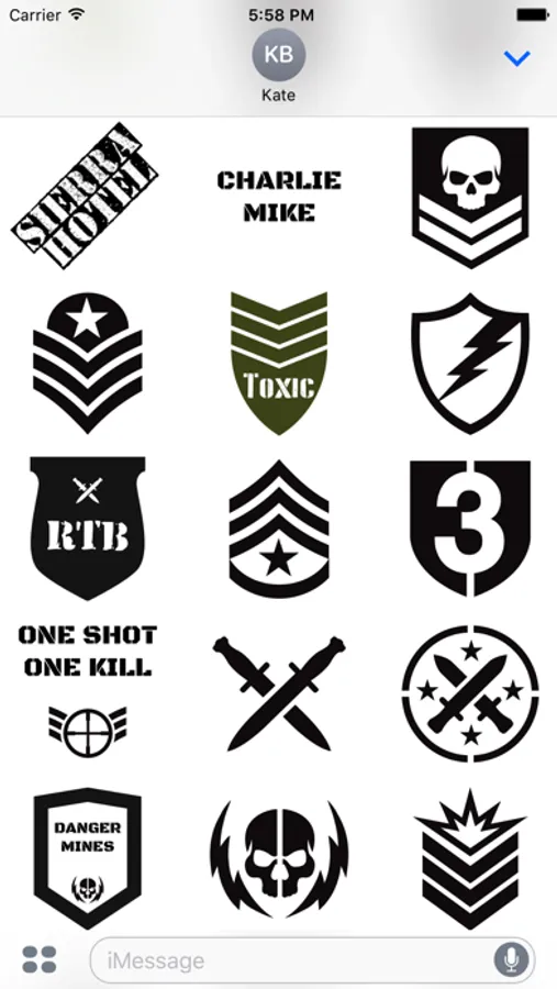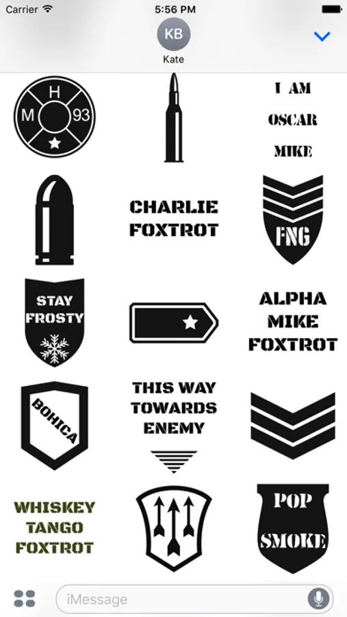 A premium set of Military Slang sticker Emoticons / Emojis and symbols.