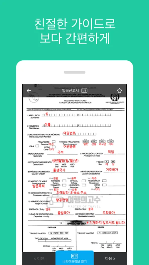 이제 출입국 신고서도 쉽게 작성해보세요. 여행의 고수가 직접 여행을 다니며 써보며 만든 출입국 신고서는 전 세계 출입국 관련 문서를 모두 내장하고 있어 데이터 사용 없이 편리하게 이용하실 수 있고 여권 정보를 간편하게 기입하여 편리한 출입국 신고서 작성을 도와드립니다. 물론 모든 기능을 무료로 제공합니다.