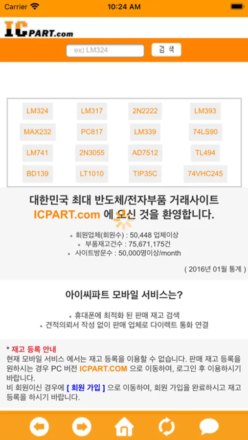 * ICpart는 기존의 Off-line기반의 카탈로그 및 전화를 통한 구매문의에서 벗어나 On-line상에서 한번의 검색으로 구매자들이 필요로 하는 부품을 판매중인 판매자들을 검색하며, 구매자들은 이서비스를 이용해 전자 부품구매를 위해 소요되는 시간을 최소화시킬 수 있도록 도와주는 웹사이트입니다.