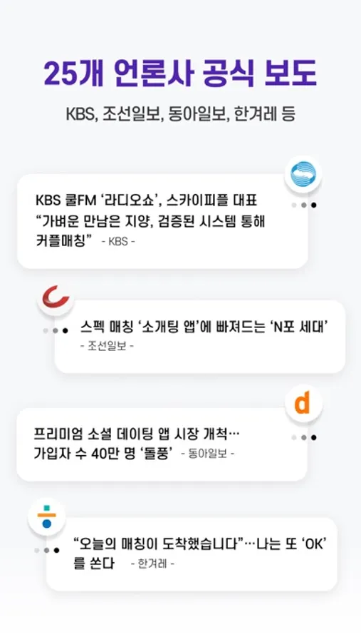 • 스카이피플은 국내 소개팅 앱 중 유일하게 KBS 공중파 라디오에 2019년 10월 18일 정식 소개되었습니다. (박명수 라디오쇼)